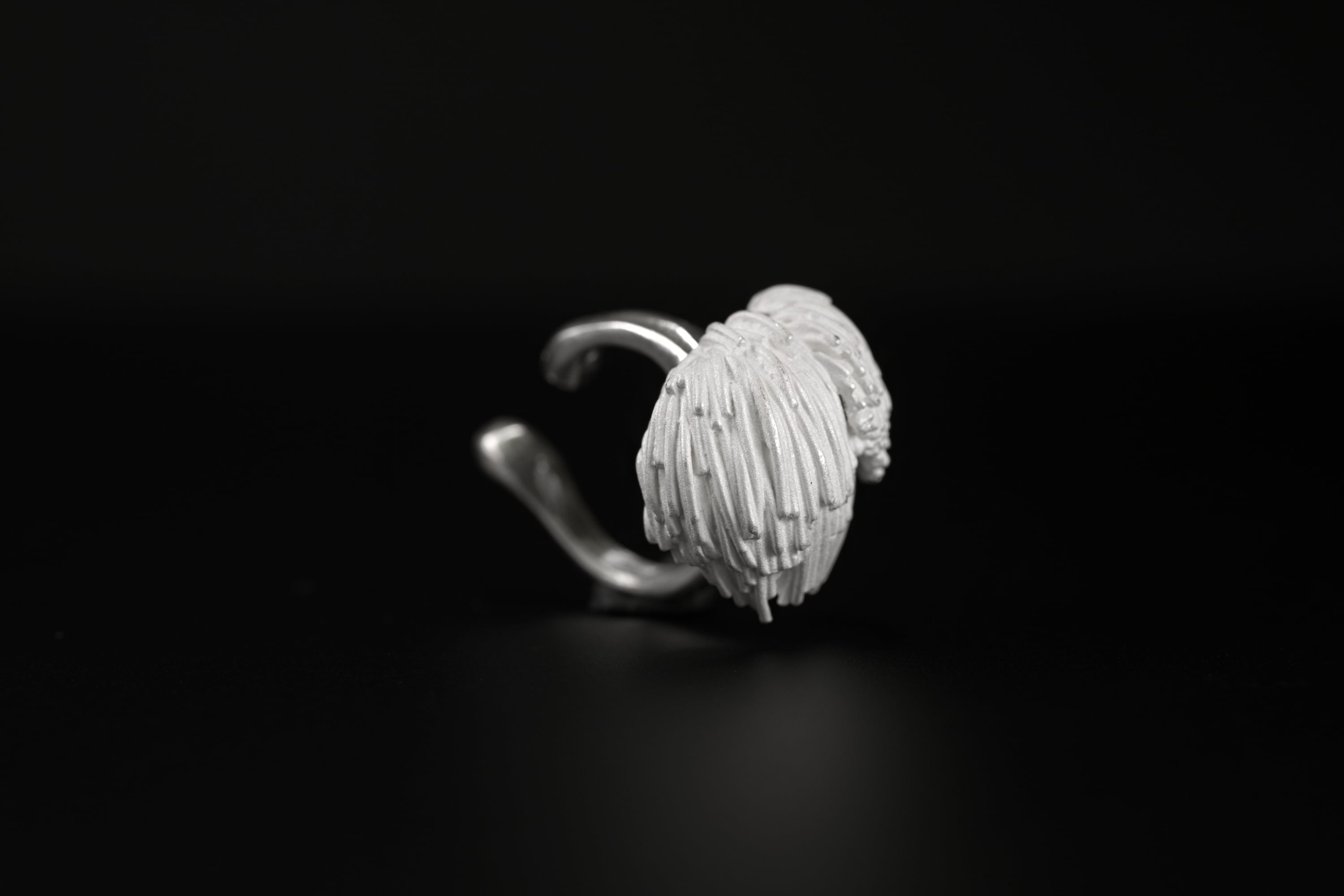 耳からフサァッとヤマブシタケが生えるイヤーカフです。