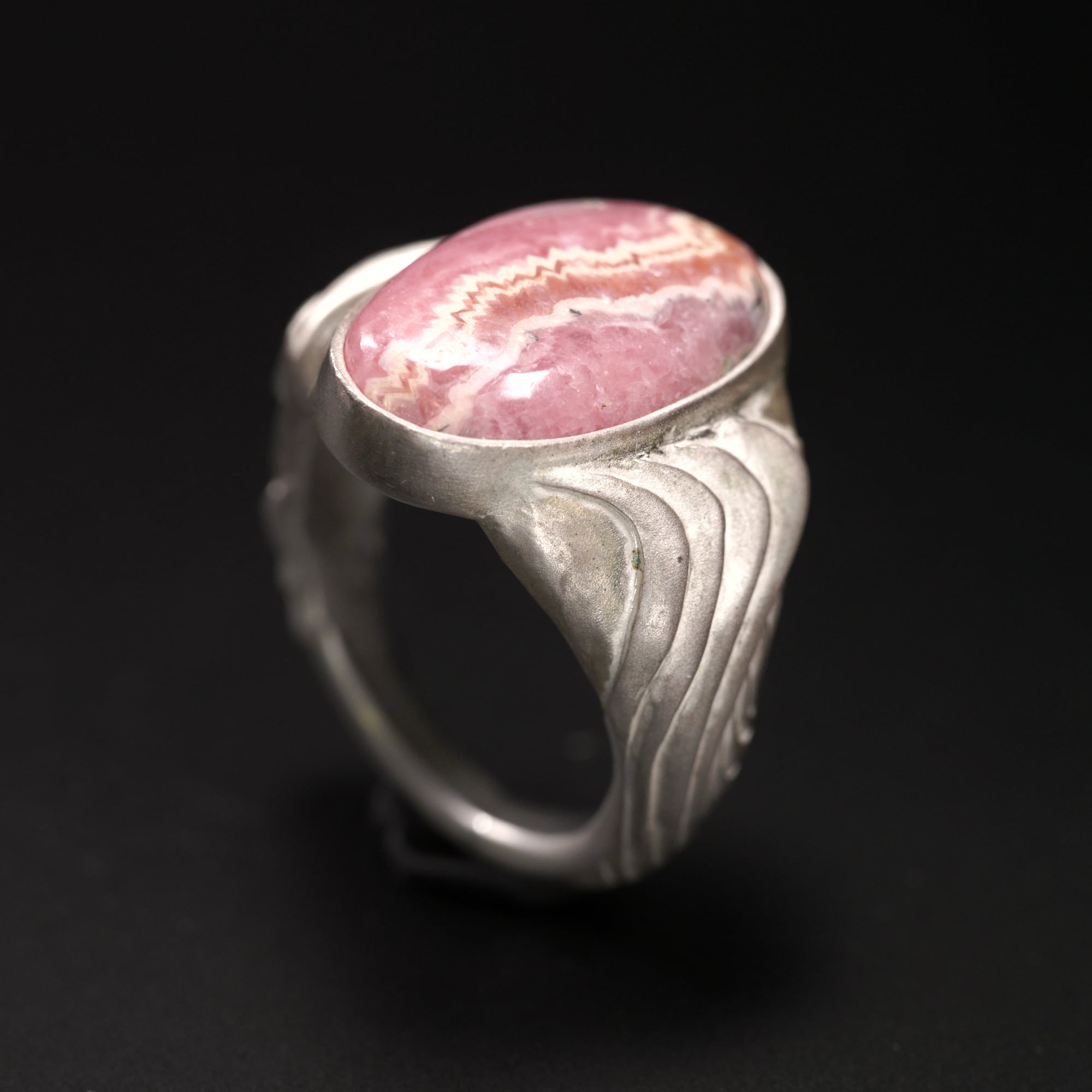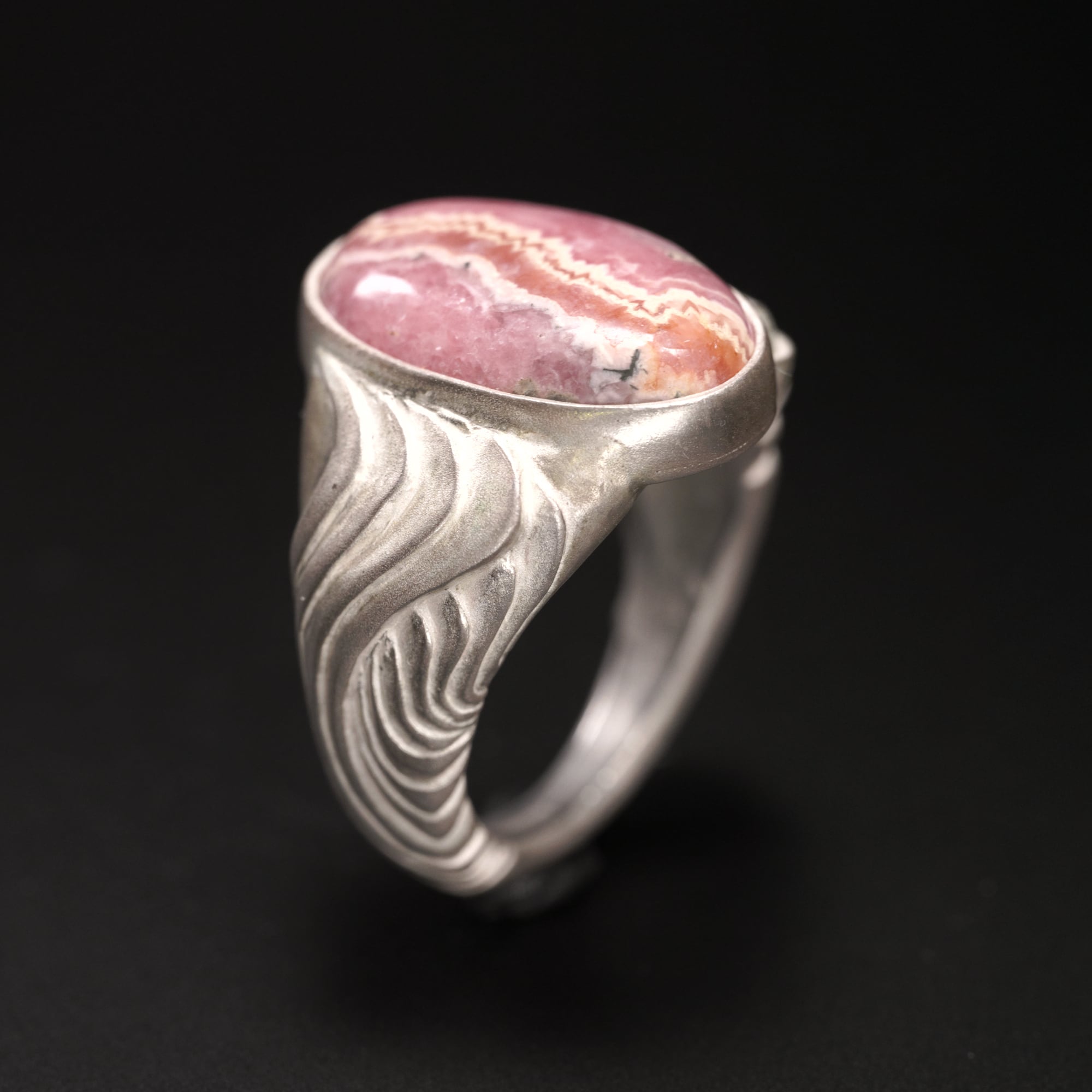 とても大ぶりな印台リングです。アール・ヌーヴォー的な曲線模様を掘り込みました。