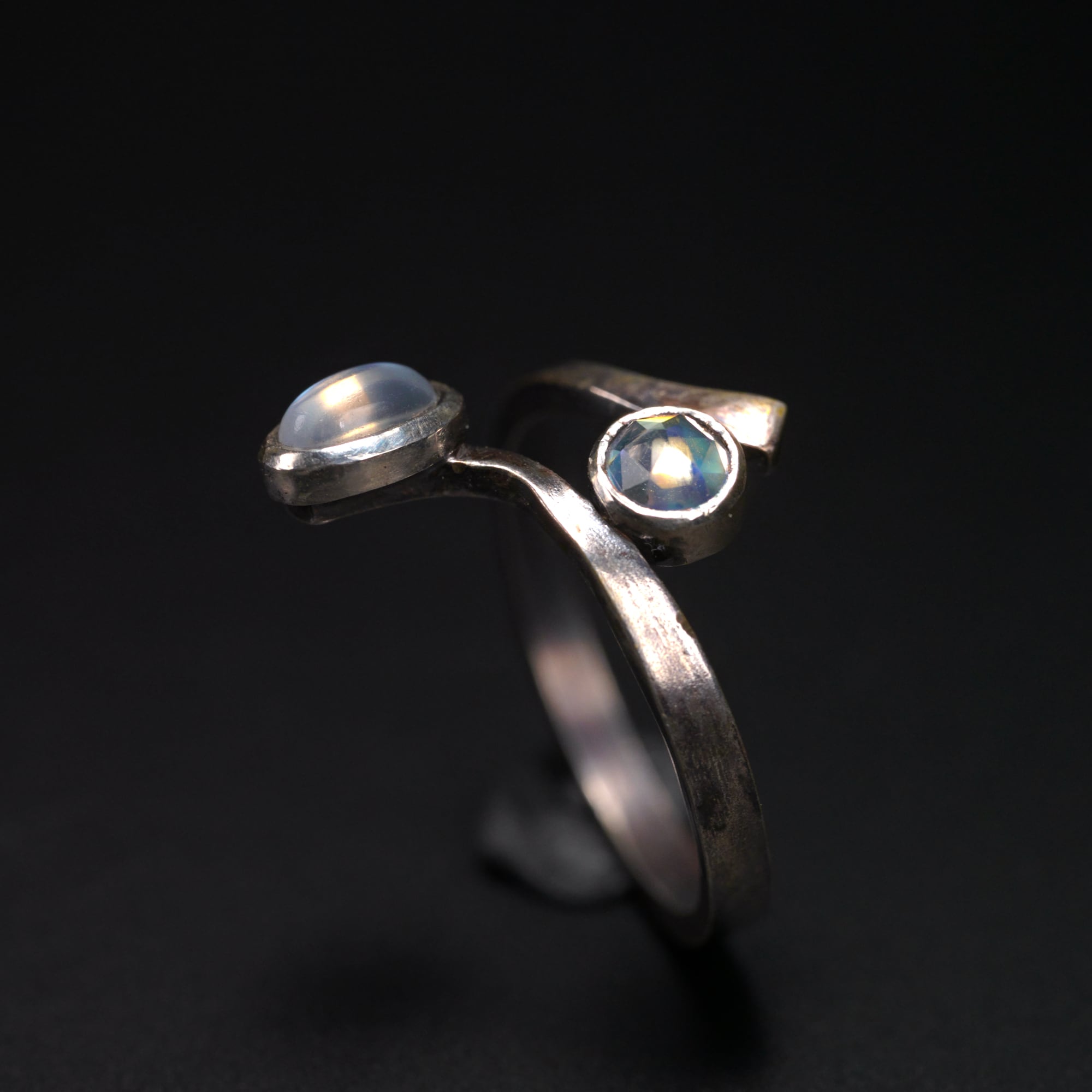 【1点もの】シルバーブルームーンストーン×アンデシンラブラドライト リング#11