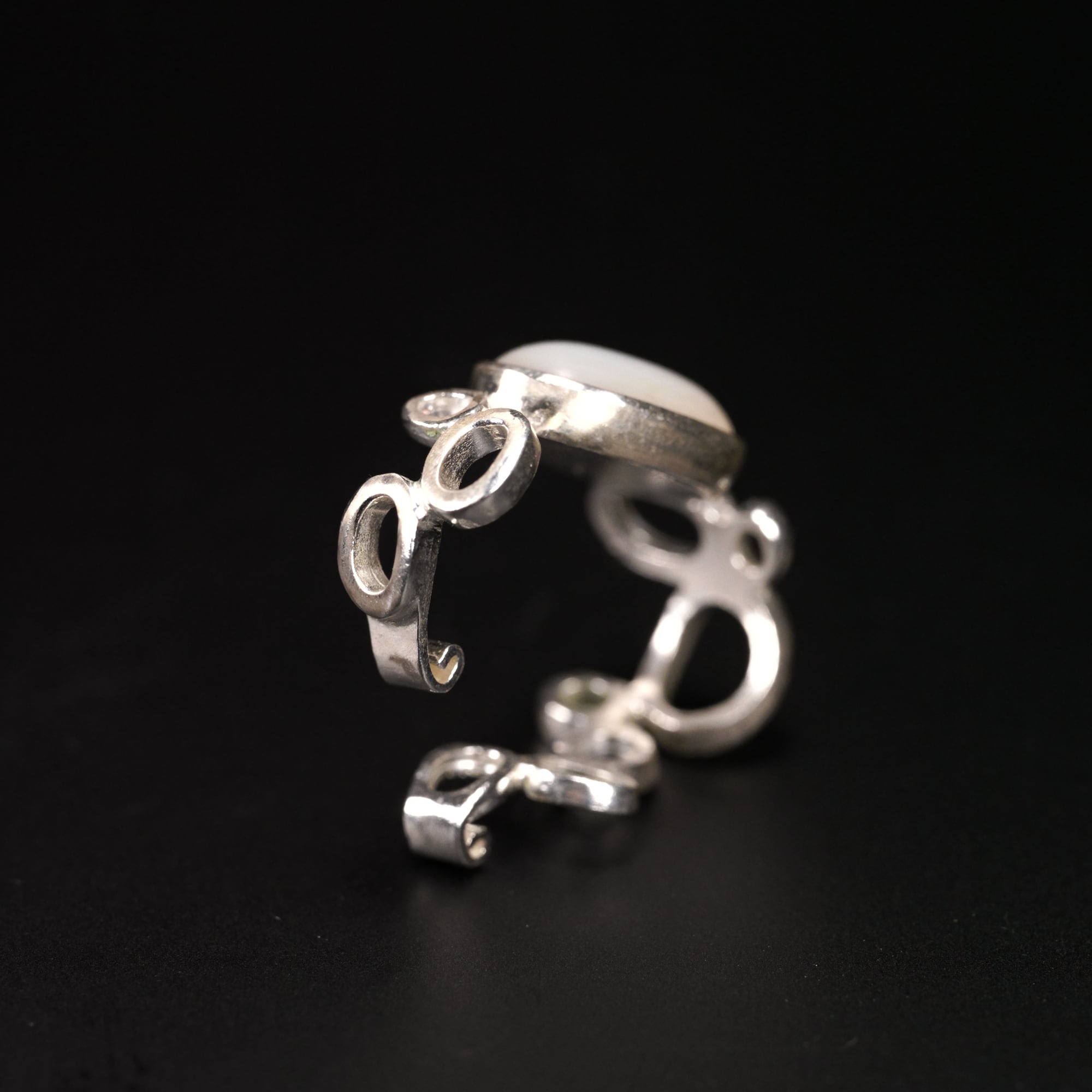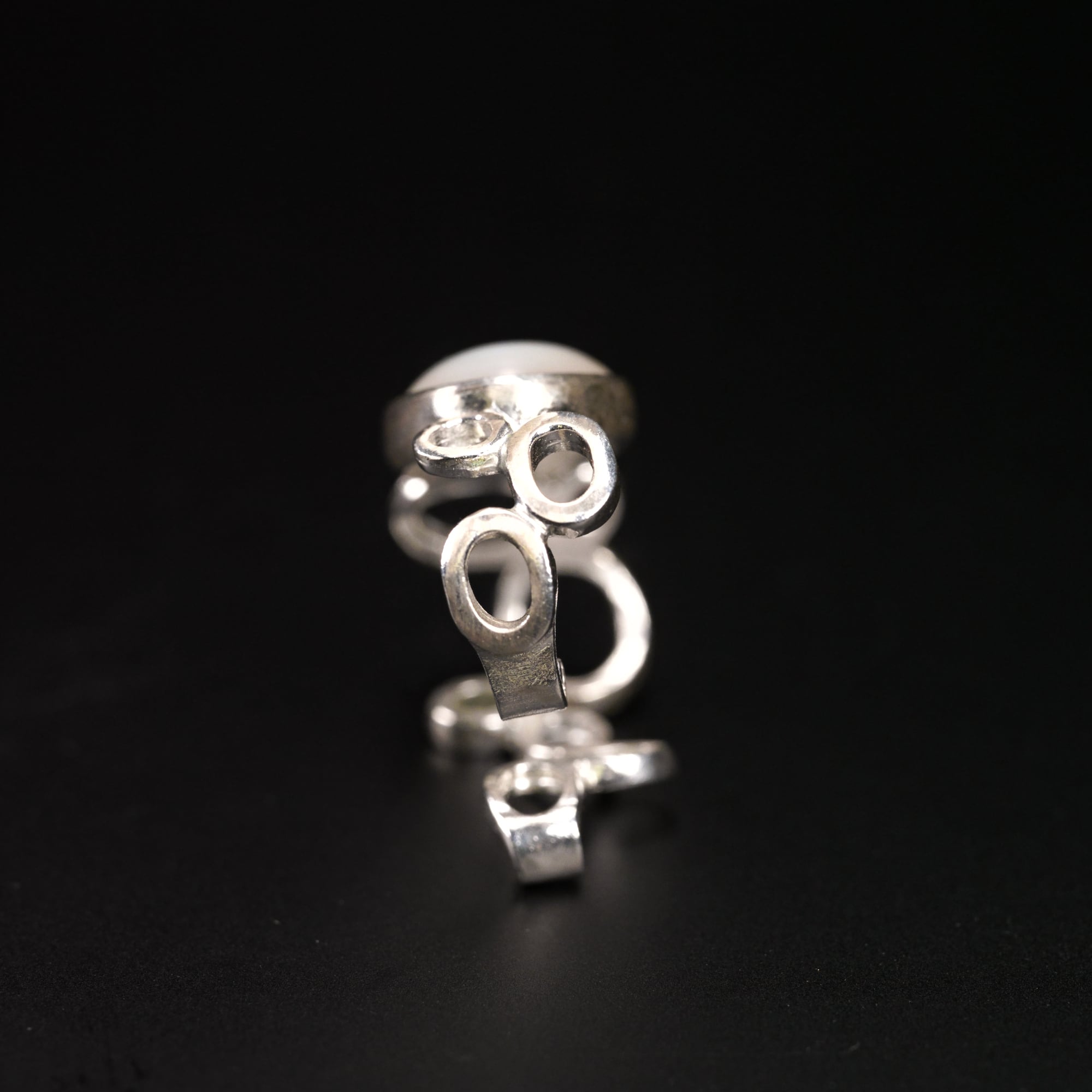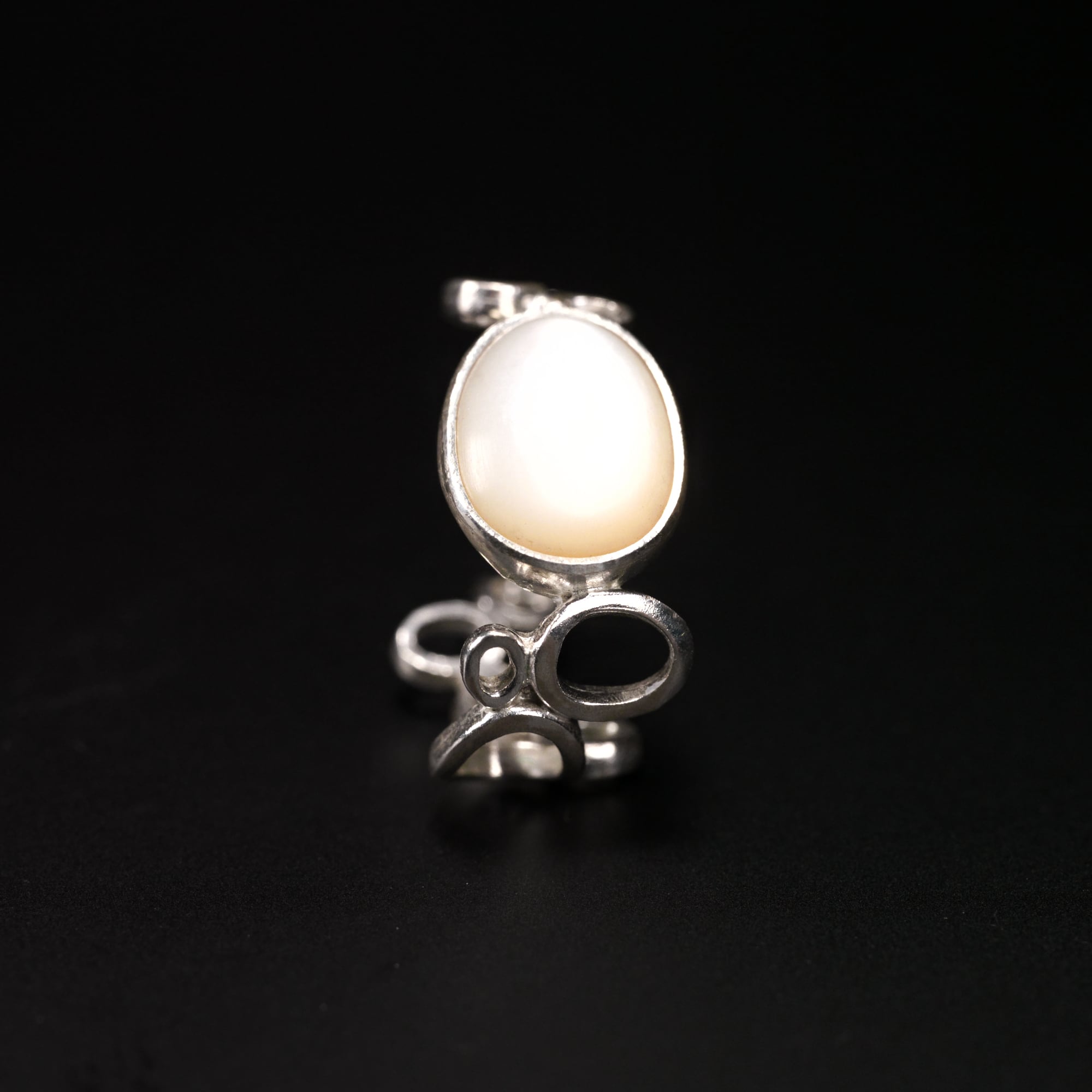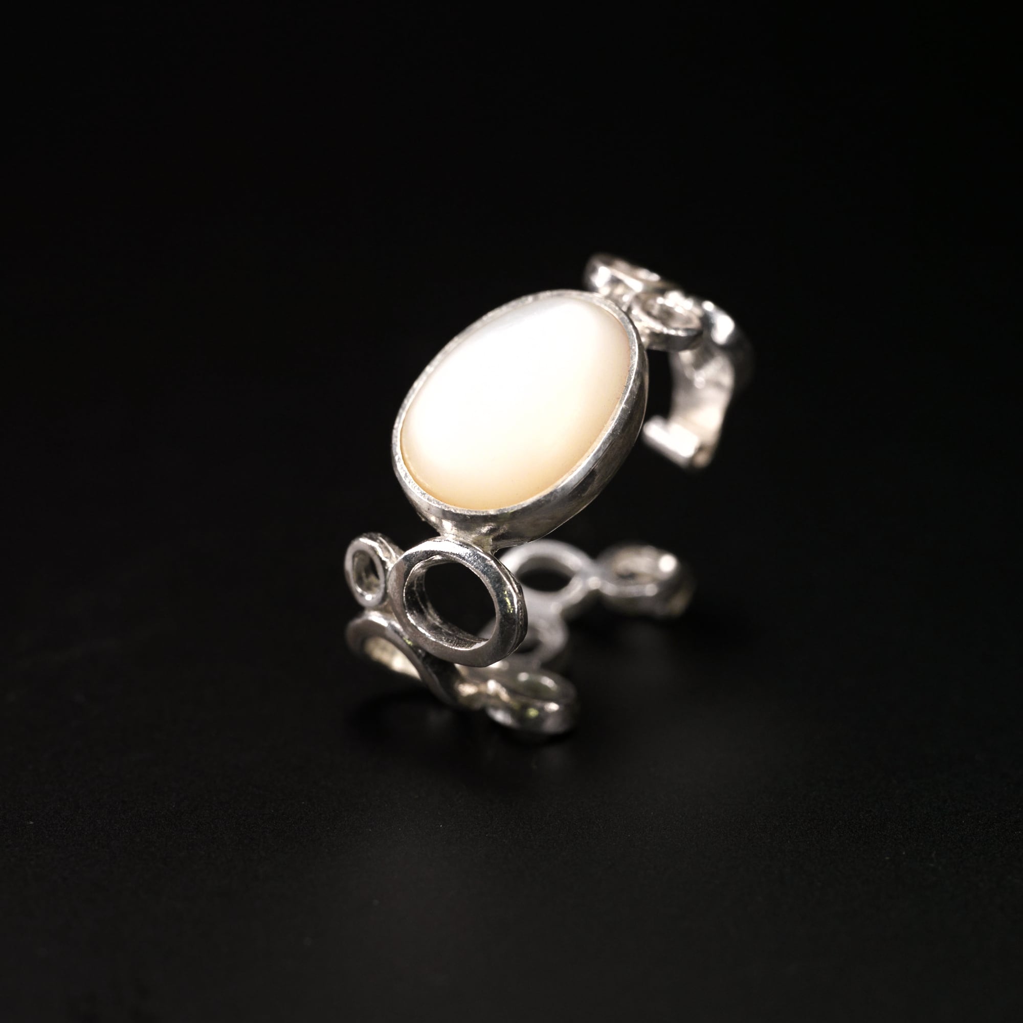 オール地金で製作した作品です。真珠の母貝のひとつ、白蝶貝をイヤーカフに仕立てました。海の泡をモチーフにデザインしています。柔らかな輝きが落ち着いた印象です。 Silver950 白蝶貝