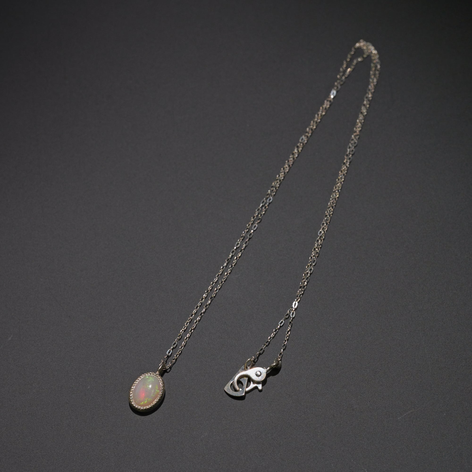 ミルクのような柔らかい輝きのホワイトオパール。石座の周りにミルグレインを施しました。クラシックな印象が漂うネックレスです。