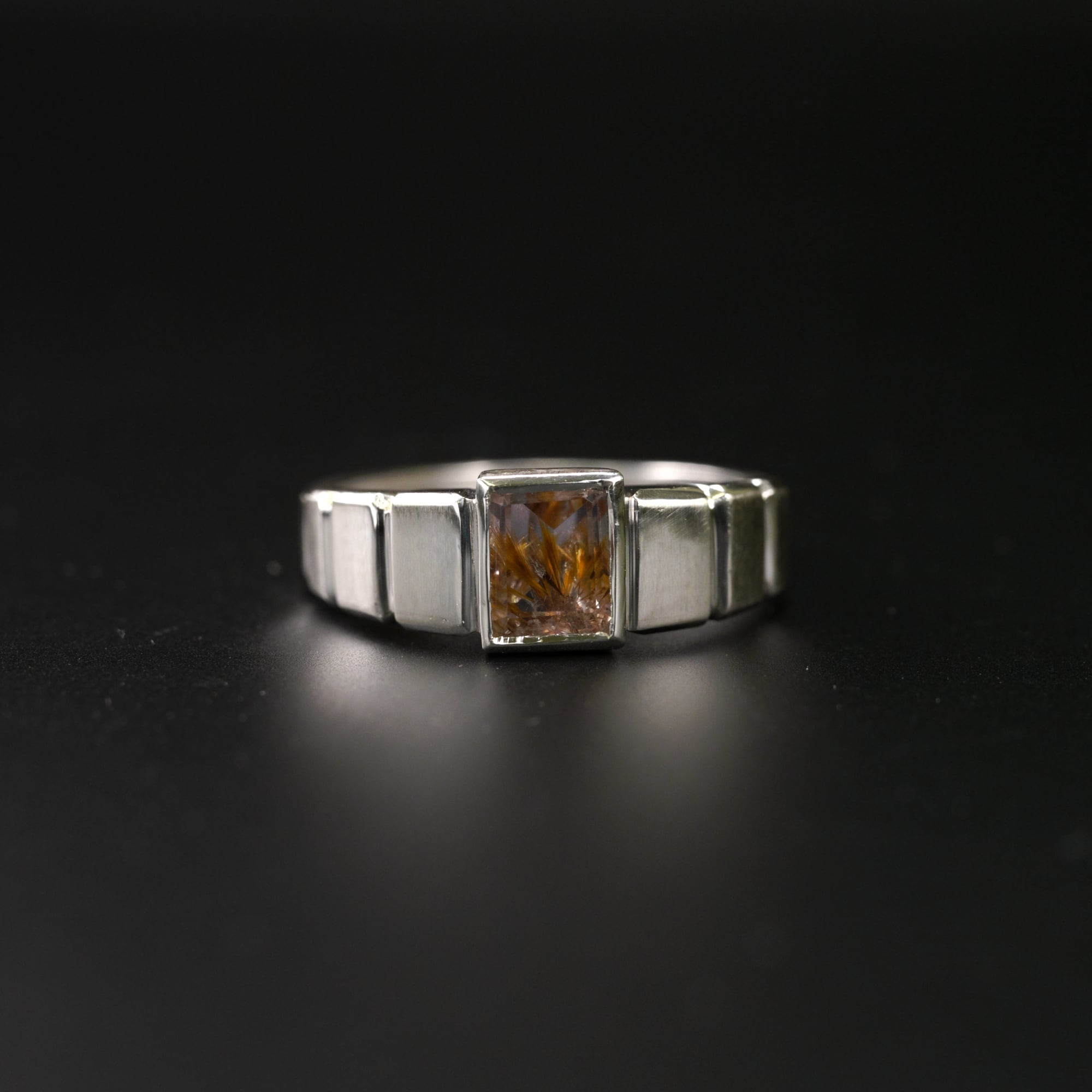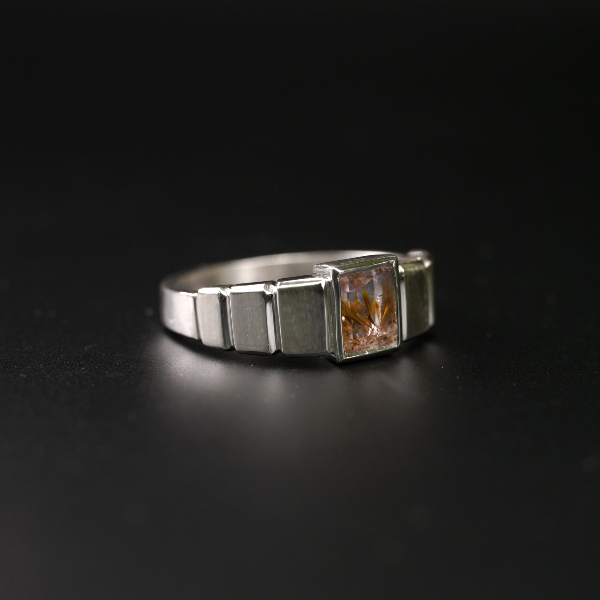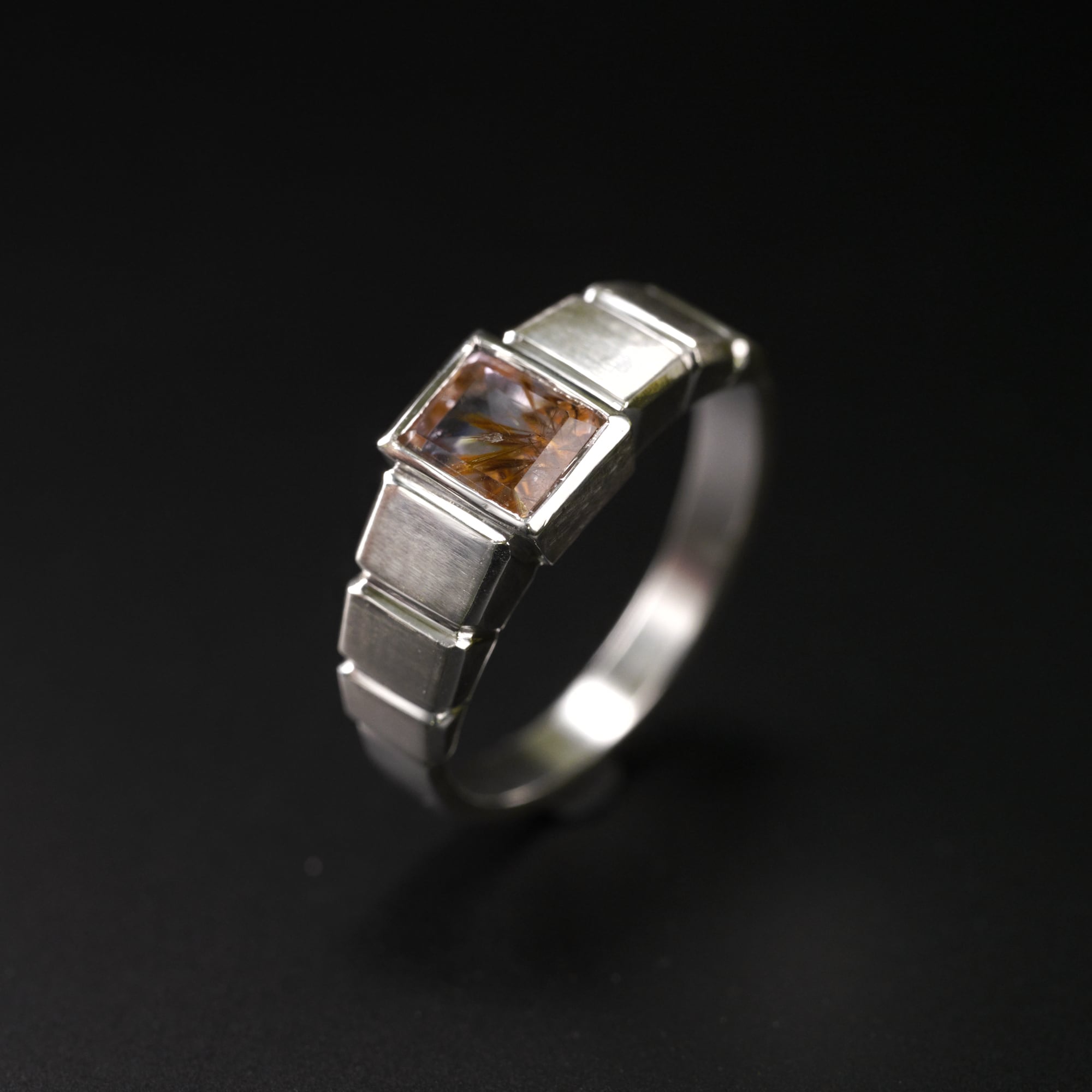 四角を基調としたアール・デコ調のデザイン。シンプルで使い勝手がとても良く、重ね付けやコーデも楽しめるリングに仕上がりました。 サイズ:11号 Silver950 ゲーサイトインアメシスト