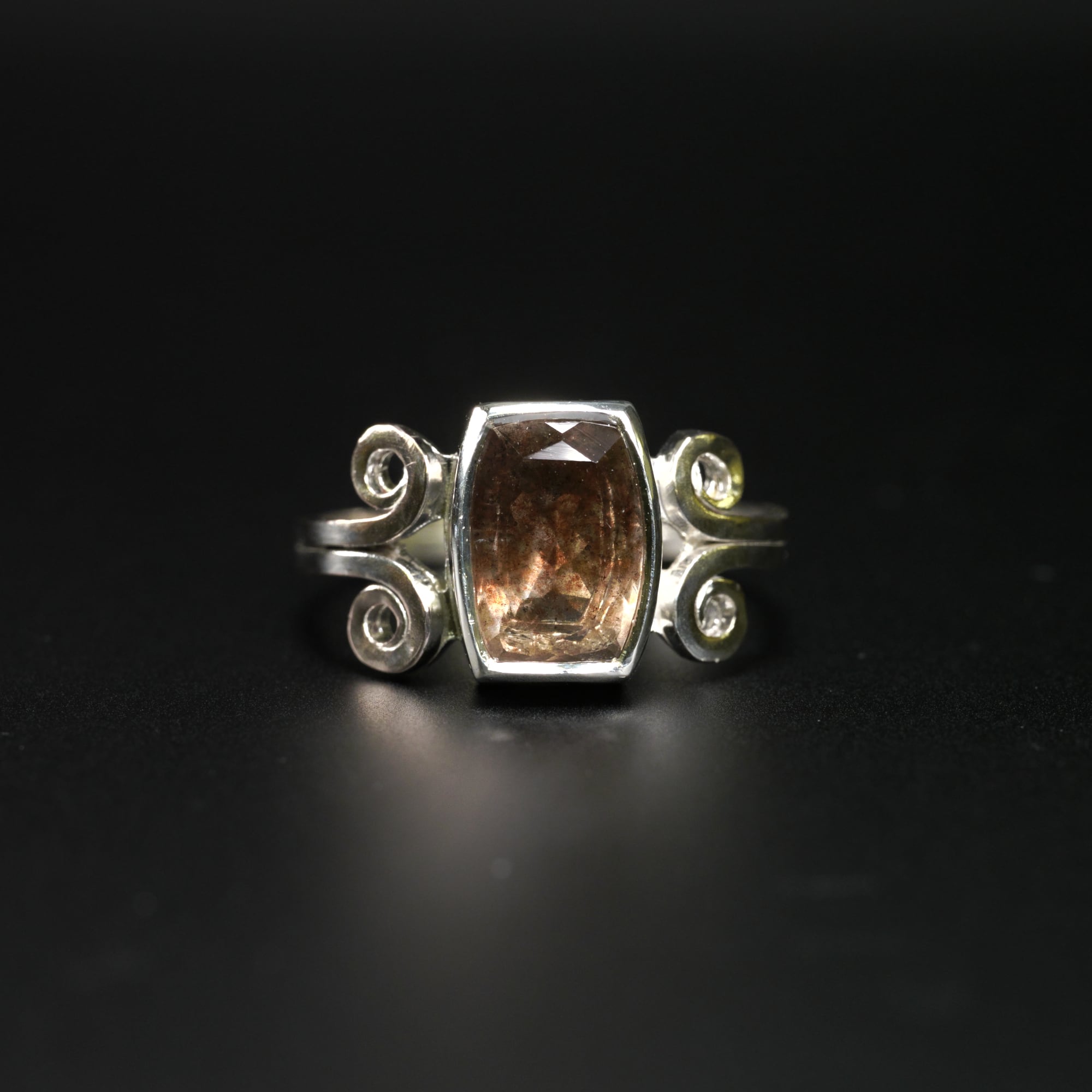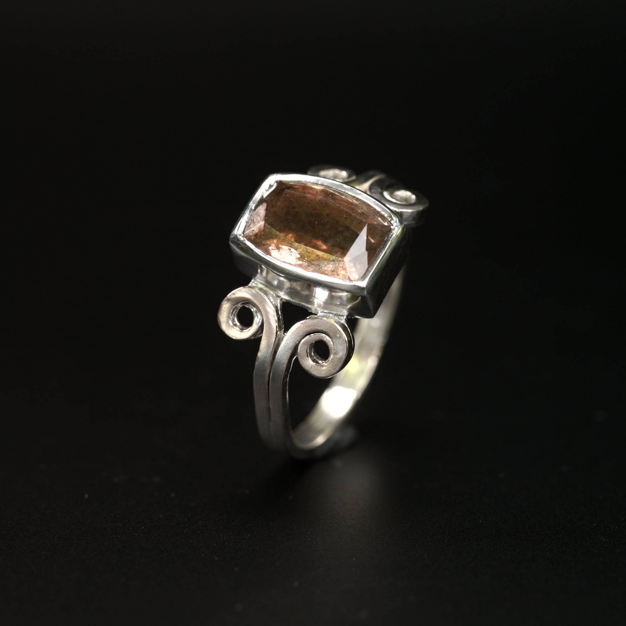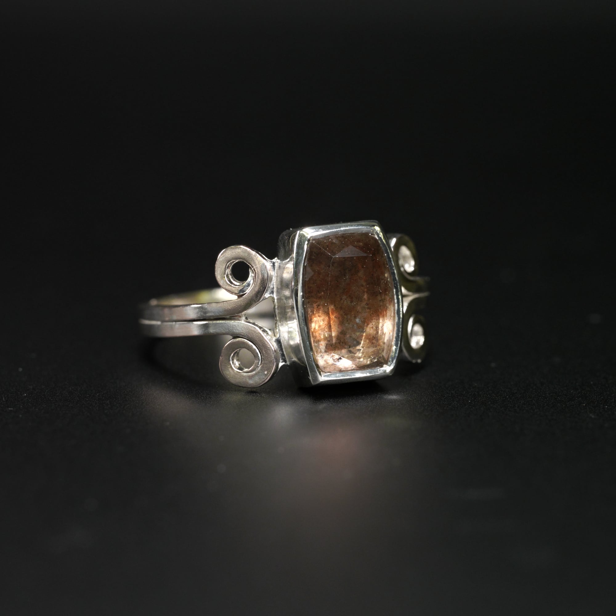 【1点もの】アクアマリンサンストーン×四分一銀リング #12