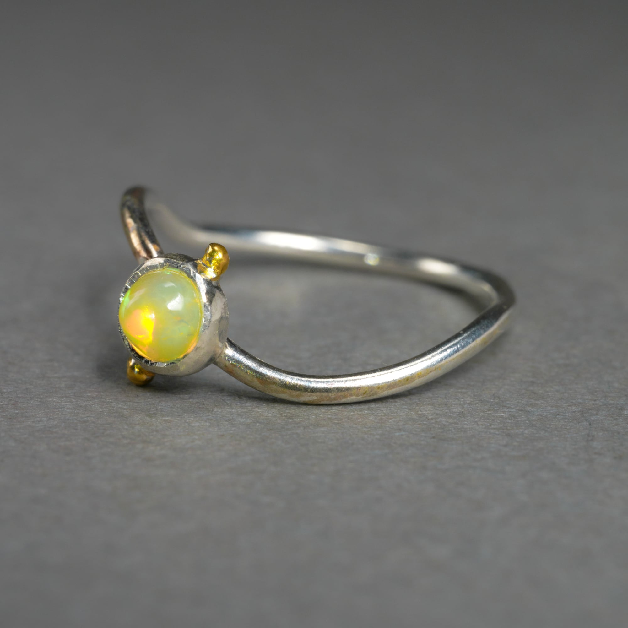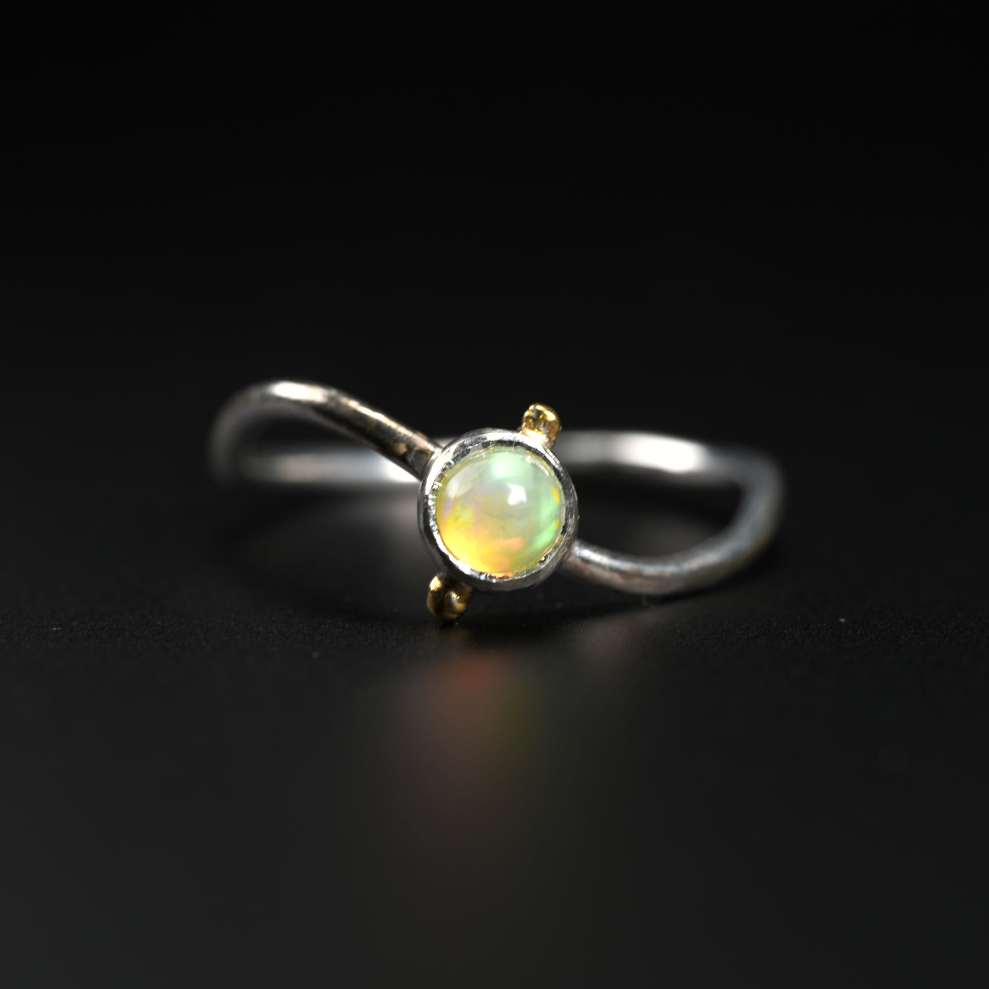 石座の両サイドにはポイントでK24メッキを施しています。透明感あるオパールが可愛らしく光ります。