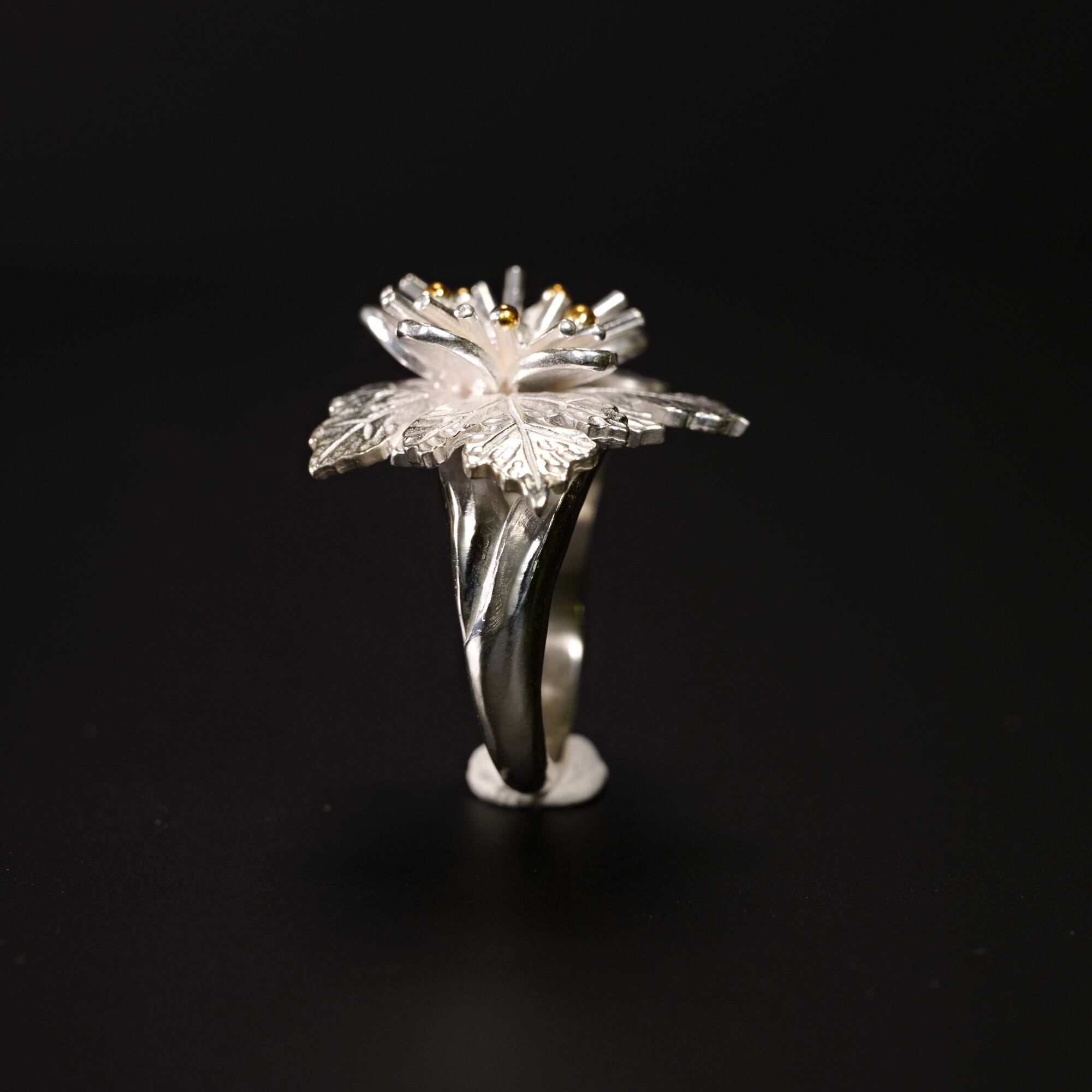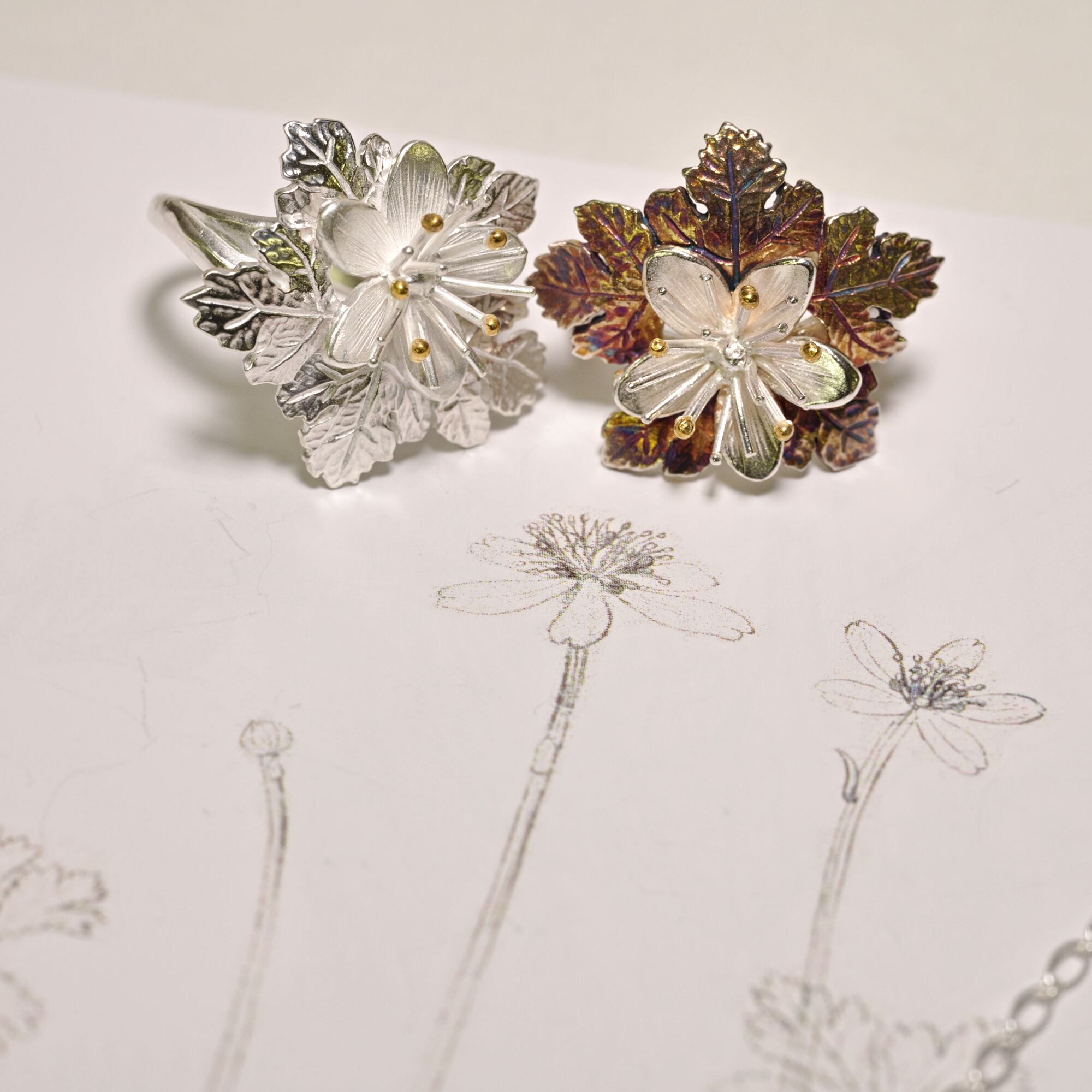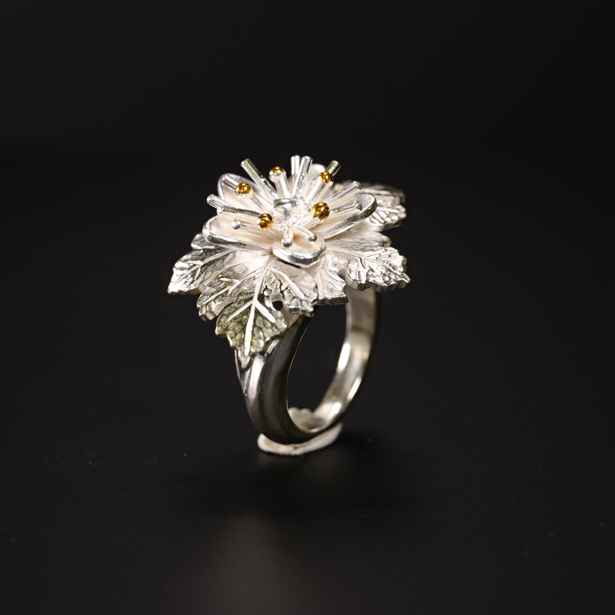 植物学者、牧野富太郎氏が愛した花「バイカオウレン」のシルバーリング。